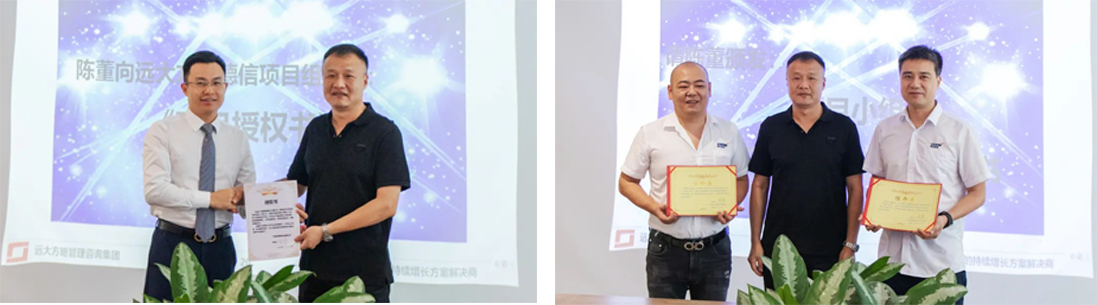 會上,陳董為遠大方略項目組頒發(fā)了授權(quán)書,授予項目組相關管理權(quán)力;為項目相關負責人頒發(fā)任命書,全力推動變革。
