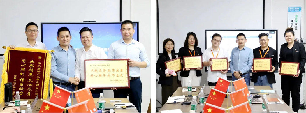 劉總為遠大方略項目組頒發(fā)了錦旗和牌匾以示感謝,對變革項目中表現(xiàn)優(yōu)異的團隊和個人進行嘉獎和表彰。鼓勵公司全員持續(xù)實踐變革動作,為公司實現(xiàn)跨越式發(fā)展助力的同時實現(xiàn)更高的自我價值。