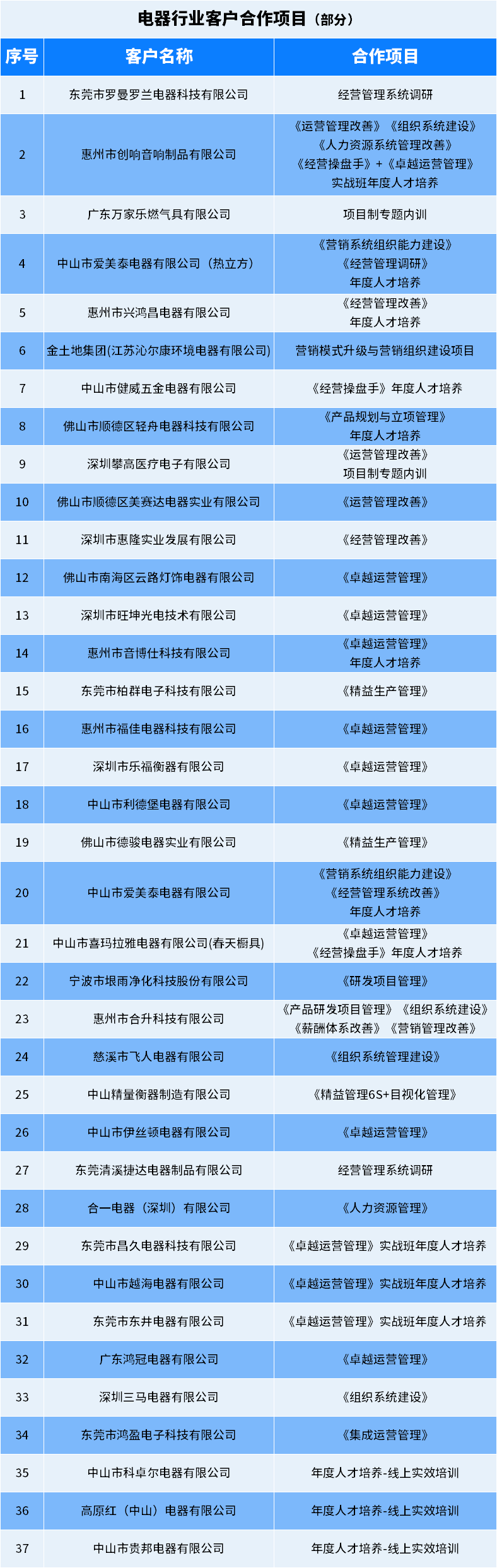 富美康電器與遠(yuǎn)大方略先后合作開(kāi)啟《組織系統(tǒng)建設(shè)》《精益管理》《卓越運(yùn)營(yíng)管理》《營(yíng)銷(xiāo)+研發(fā)組織系統(tǒng)建設(shè)》等8期咨詢(xún)項(xiàng)目,持續(xù)合作年度培訓(xùn)服務(wù),派送操盤(pán)手學(xué)員6人,在全公司范圍內(nèi)組織線上培訓(xùn),搭建了完善人才培訓(xùn)體系,培養(yǎng)了具有經(jīng)營(yíng)思維的核心團(tuán)隊(duì),打造一批能力卓越的中高層管理隊(duì)伍,推動(dòng)公司業(yè)績(jī)、投資回報(bào)率穩(wěn)定增長(zhǎng)。