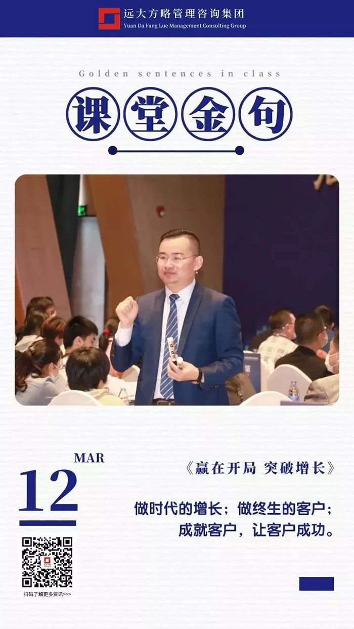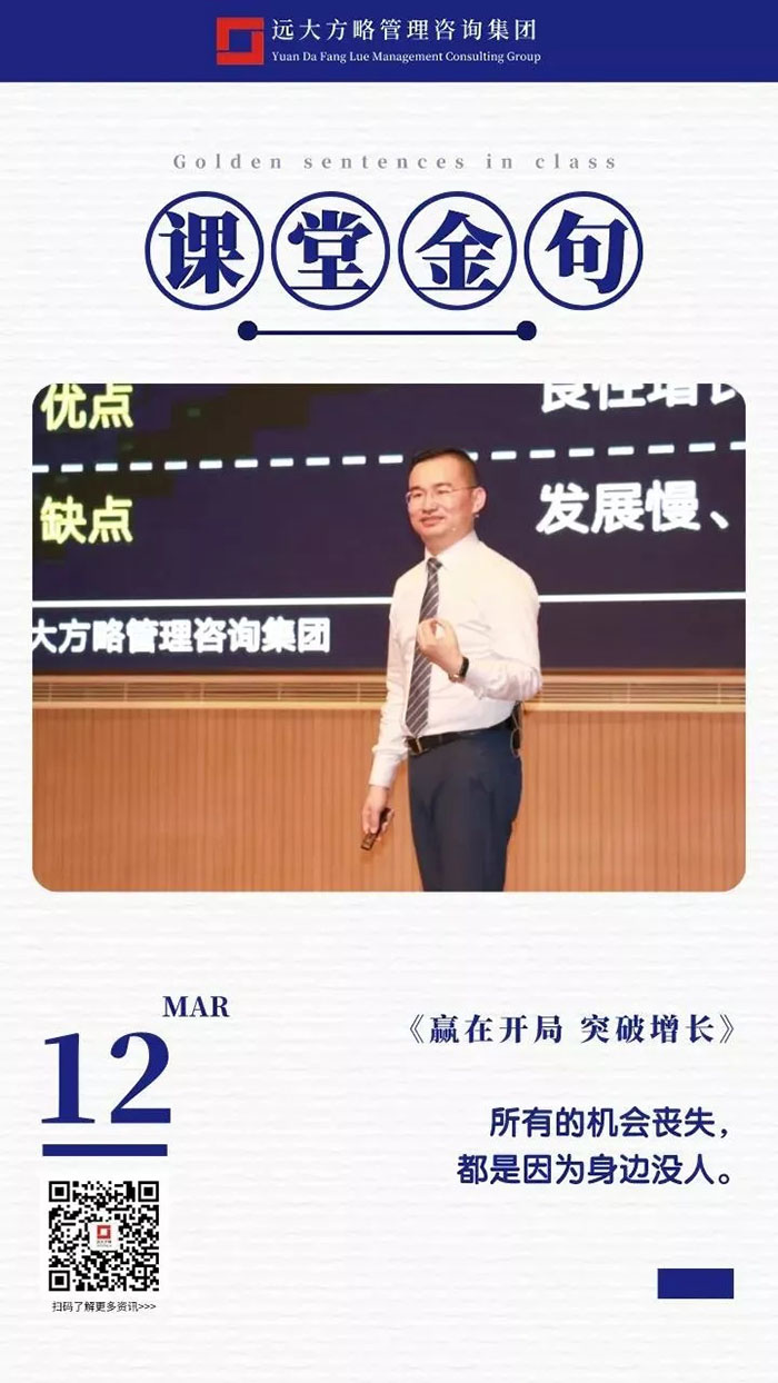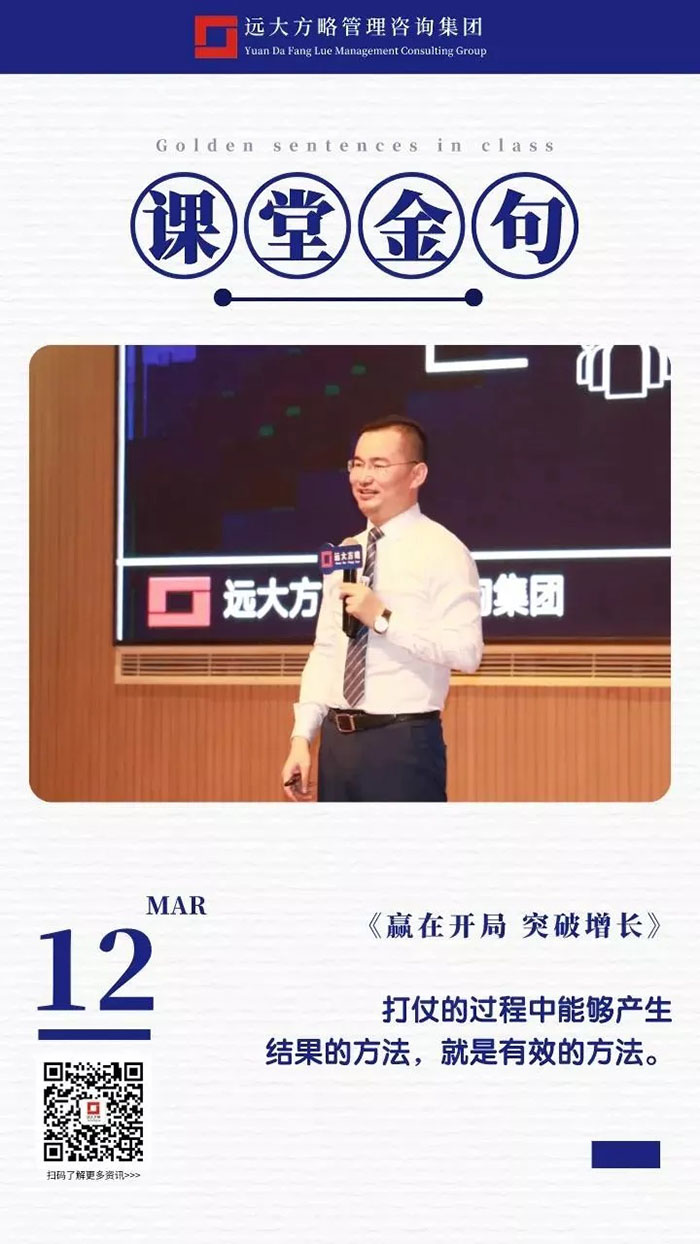 課堂上雷老師講課循序漸進(jìn),通過問題的形式逐步引發(fā)學(xué)員的思考,讓每位學(xué)員都能有所感有所悟,回到企業(yè)之后能夠落到實(shí)處,做到真正的幫企業(yè)解決問題,這也正是遠(yuǎn)大方略的定位,成為中國(guó)實(shí)體企業(yè)實(shí)效的持續(xù)增長(zhǎng)方案解決商,遠(yuǎn)大方略也一直秉承初心努力踐行!