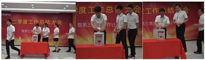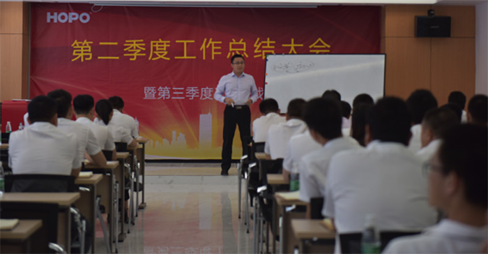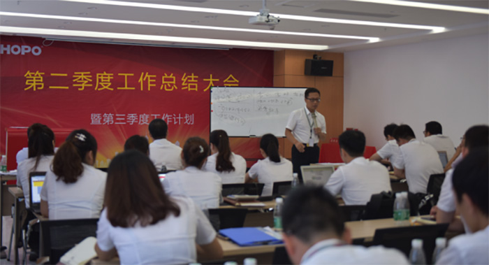 隨后,公司董事長針對季度運營情況,從產(chǎn)品、競爭對手、價格、渠道、團隊、戰(zhàn)略角度對公司上半年的工作進行解剖;闡述目前的成績與不足,對公司接下來的工作明確戰(zhàn)略布局。從整體業(yè)績情況來看,第二季度同比增長30%,沒有完成公司的要求目標,對于快速發(fā)展的HOPO來說,迎來了發(fā)展中的一次低谷,警醒我們?nèi)w員工加快步伐,練好內(nèi)功,是低谷也是蓄勢待發(fā)的機會。