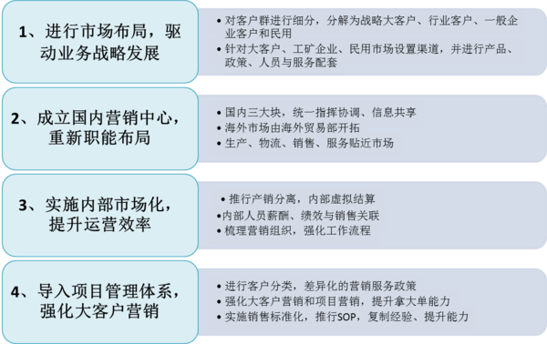 •市場戰(zhàn)略不清晰,渠道布局混亂•大客戶和大項(xiàng)目營銷能力不強(qiáng)•內(nèi)部對市場和銷售部門響應(yīng)慢