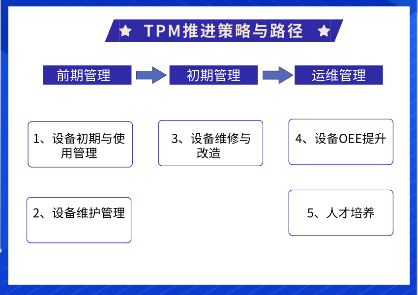 設(shè)備前期管理、設(shè)備初期管理、 設(shè)備運(yùn)維管理、設(shè)備技術(shù)管理、 設(shè)備資產(chǎn)管理、 設(shè)備信息化管理。