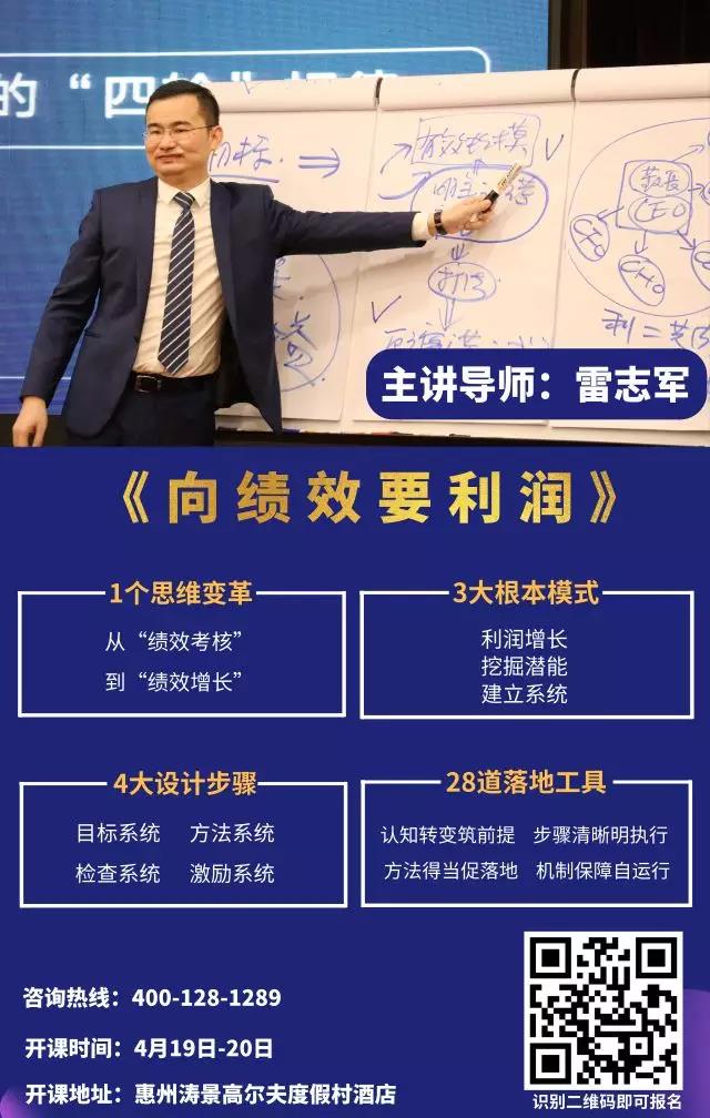 如果您想進一步了解如何激活員工?如何為員工賦能?如何通過績效管理,實現企業(yè)利潤增長,老板身心自由?歡迎走進本期由雷志軍老師主講的《向績效要利潤》的課程現場,您將會得到系統(tǒng)的答案。