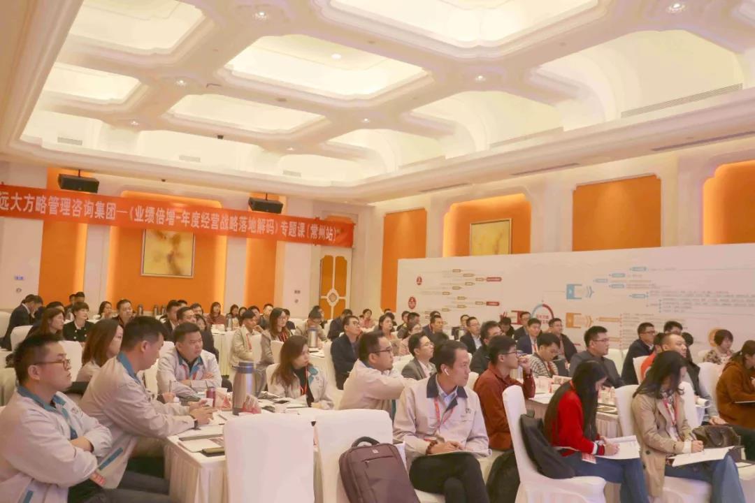 2019年11月15日—16日,遠(yuǎn)大方略《業(yè)績倍增---年度經(jīng)營戰(zhàn)略落地解碼》全國巡講課第二站,在常州白金漢爵大酒店開講。現(xiàn)場齊聚長三角100+位企業(yè)董事長、總經(jīng)理、各事業(yè)部副總等參與本次課程學(xué)習(xí)探討。