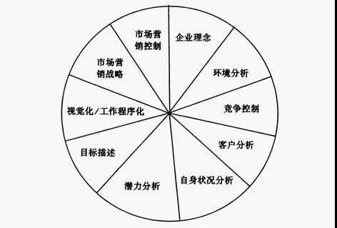 戰(zhàn)略管理十步驟系統(tǒng)是有助于企業(yè)從受眾的角度發(fā)現(xiàn)市場的一種工具,十步驟系統(tǒng)模型包括:企業(yè)理念、環(huán)境分析、競爭控制、客戶分析、自身狀況分析、潛力分析、目標描述、視覺化/工作程序化、市場營銷戰(zhàn)略、市場營銷控制。每一部分的內容自成體系。