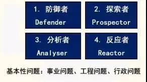 雷蒙德·邁爾斯(Raymond Miles)和查爾斯·斯諾(Charles Snow)在1978年《組織戰(zhàn)略、結構和方法》(Organization Strategy, Structure, and Process)一書中認為, 企業(yè)戰(zhàn)略并不是取決于組織的類型或風格,而是取決于那些需要戰(zhàn)略解決的基本性問題: