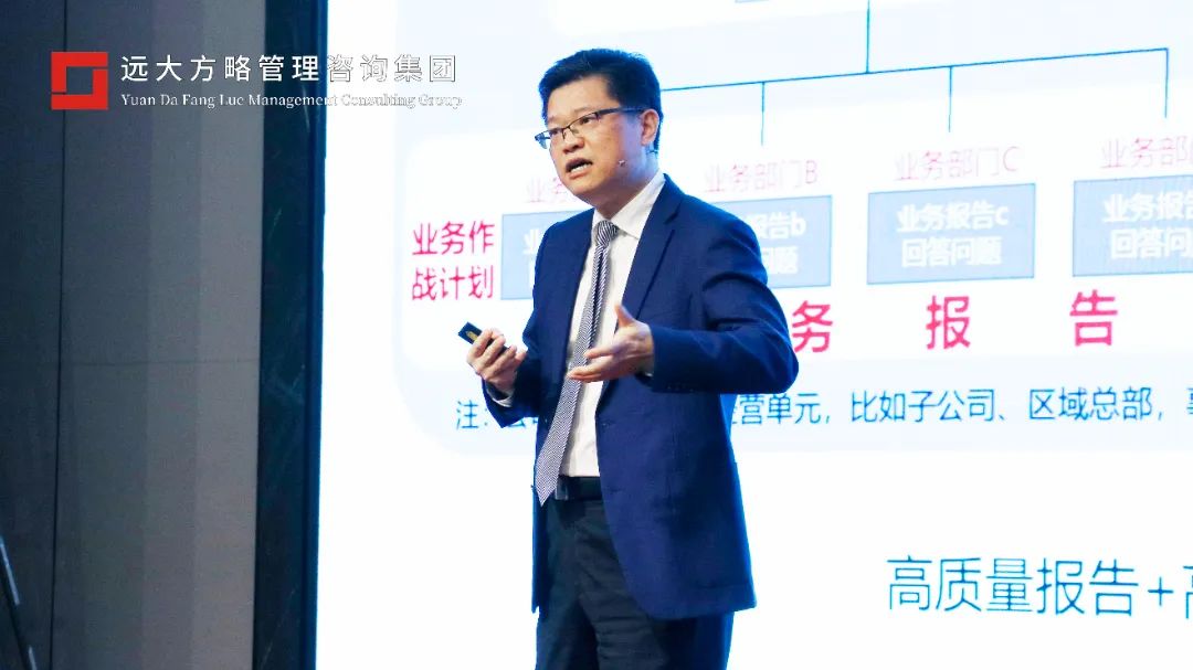 本次戰(zhàn)略課程將主要從“戰(zhàn)略復(fù)盤、戰(zhàn)略思維、戰(zhàn)略規(guī)劃、再到戰(zhàn)略解碼”等方面逐層剖析,全面梳理華為從戰(zhàn)略到執(zhí)行的全流程,課程開始之前遠大方略總經(jīng)理為大家梳理了整個課程的框架;同時介紹了舉辦此次課程的初心,隨后雷老師請出了今天課程的主講老師——楊?老師主講。楊老師首先從“戰(zhàn)略復(fù)盤”的角度,以“一報一會”引入,即“經(jīng)營分析報告”和“經(jīng)營分析會議”。