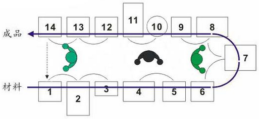 生產同步化的理想狀態(tài)是工件在各工序間一個一個生產、一個一個往下一道工序傳遞,直至總裝線,即單件生產、單件流動。工廠中有各種各樣的工序,為了實現(xiàn)全部生產過程的同步化,需要根據(jù)這些工序的特點,使批量盡量縮小,朝理想的“1個流”靠攏。但這樣一來,作業(yè)切換就會變得很頻繁。