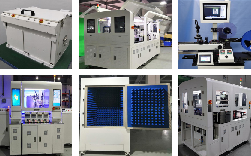 公司產(chǎn)品分為屏蔽箱系列和自動(dòng)化系列兩個(gè)模塊,包括2.4G/5.8G、5G毫米波等廠測與實(shí)驗(yàn)室測試用各類RF/AF手/自動(dòng)、屏蔽隔音箱和混響室;及以無線產(chǎn)品自動(dòng)測試為主的四軸無線模塊自動(dòng)測試機(jī)、直線運(yùn)動(dòng)模組型自動(dòng)測試機(jī)、智能視覺編帶機(jī)、PCBA自動(dòng)貼標(biāo)機(jī)、鼠標(biāo)自動(dòng)測試ATE、無線IC模塊自動(dòng)燒錄測試一體機(jī)、CCD視覺自動(dòng)篩選分揀機(jī)等。