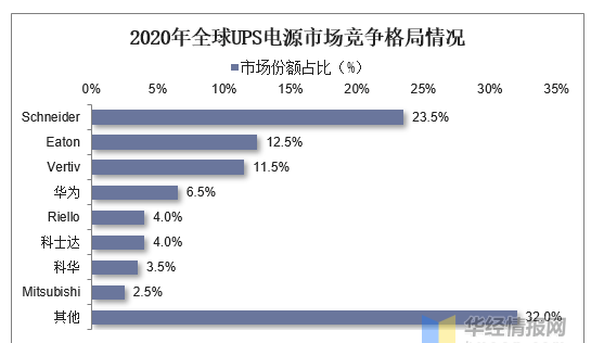 從全球市場競爭格局來看,根據(jù)Omida的統(tǒng)計,2020年全球UPS電源行業(yè)CR3市占率達(dá)到49%,行業(yè)集中度較高。