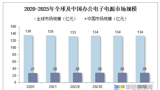 辦公電子電源主要包括用于給顯示器,打印機(jī)等終端設(shè)備充電的電源,未來其市場規(guī)模將隨各國辦公需求增長而增長。預(yù)計至2025年全球辦公電子電源市場規(guī)模將達(dá)134億元,其中液晶顯示器電源,打印機(jī)電源市場規(guī)模分別達(dá)43億元,92億元。至2025年中國辦公電子電源市場規(guī)模將達(dá)28億元,2020-2025年CAGR達(dá)1.23%,其中液晶顯示器電源,打印機(jī)電源市場規(guī)模分別達(dá)10億元,18億元。