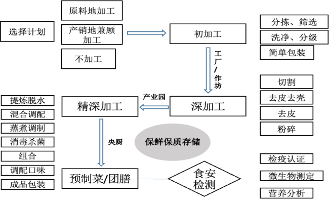 食材加工環(huán)節(jié)主要包含產(chǎn)地預(yù)冷、檢驗檢疫、分揀作業(yè)、加工處理、包裝、質(zhì)量管理及存儲(以上環(huán)節(jié)不含產(chǎn)地端生產(chǎn)/采摘等)。