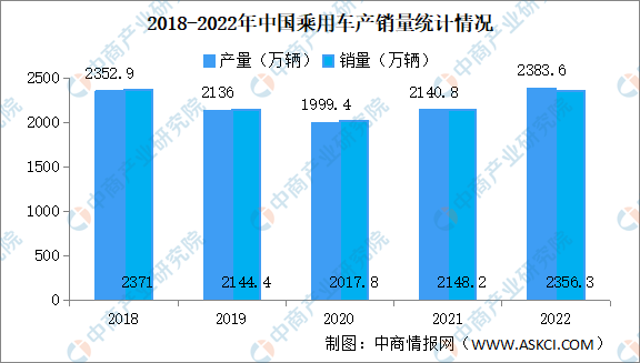 自2020年以來,我國乘用車市場實現(xiàn)連續(xù)增長。得益于購置稅優(yōu)惠和新能源快速增長,2022年國內(nèi)乘用車市場銷量呈"U型反轉(zhuǎn),漲幅明顯。2022年,乘用車產(chǎn)銷分別完成2383.6萬輛和2356.3萬輛,同比分別增長11.2%和9.5%,增速高于行業(yè)總體。
