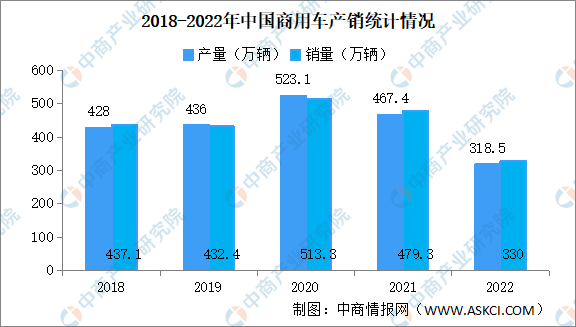 2022年全國商用車整體需求放緩,產(chǎn)銷分別完成318.5萬輛和330萬輛,同比分別下降31.9%和31.2%,呈現(xiàn)兩位數(shù)下滑,主要原因是前期環(huán)保和超載治理政策以及高位油價等因素的影響。