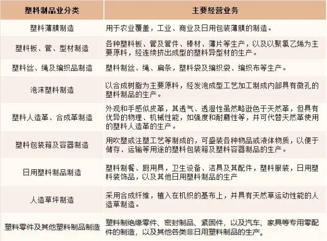 塑料制品業(yè)又稱塑料加工業(yè),系我國輕工業(yè)的支柱產(chǎn)業(yè)之一,與我國國民經(jīng)濟(jì)發(fā)展息息相關(guān)。根據(jù)加工工藝和產(chǎn)品細(xì)分領(lǐng)域的不同,塑料制品業(yè)又可分為:塑料薄膜制造;塑料板、管、型材制造;塑料絲、繩及編織品制造;泡沫塑料制造;塑料人造革、合成革制造;塑料包裝箱及容器制造;日用塑料制品制造;人造草坪制造;塑料零件及其他塑料制品制造。