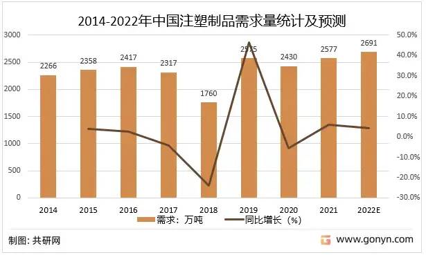 2014-2022年中國注塑制品需求量統(tǒng)計(jì)及預(yù)測