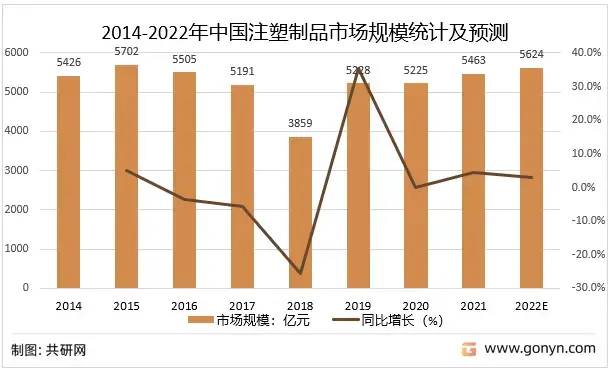 2014-2022年中國注塑制品市場規(guī)模統(tǒng)計(jì)及預(yù)測