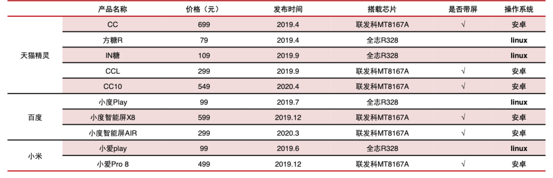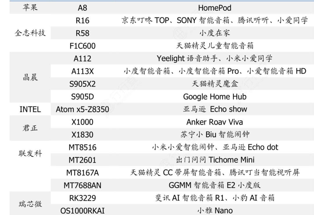 芯片廠商主要為智能音箱提供主控芯片、內(nèi)存芯片、處理器芯片、音頻芯片、通信芯片、電源系統(tǒng)管理芯片等,其中主控芯片作為主板的核心組成部分,優(yōu)質(zhì)的主控芯片可有效提升智能音箱音質(zhì),發(fā)揮音效設(shè)備及麥克風(fēng)的最佳性能。