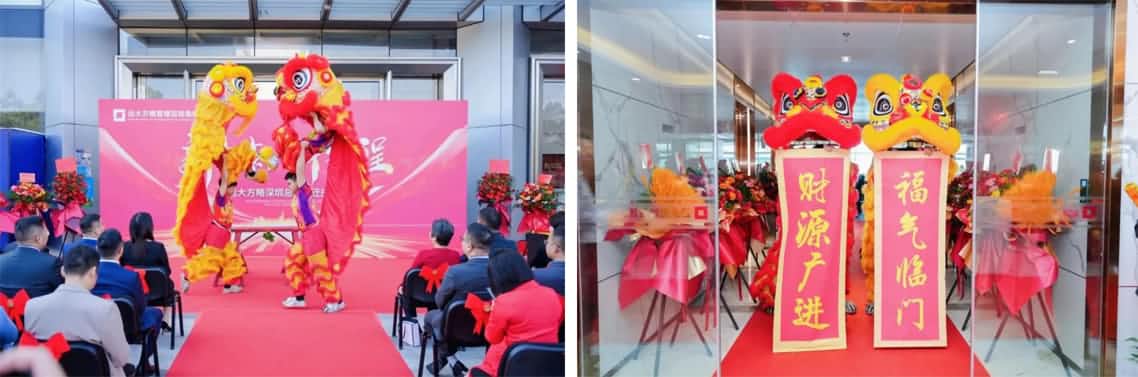 隨后,在現(xiàn)場全員的祝福和見證下,雷總、何總攜遠(yuǎn)大方略核心高管共同為新址揭幕,新址紅幕緩緩揭開的那一刻,禮花齊放,掌聲四起,昭示著遠(yuǎn)大方略翻開了新的一頁,也激勵著全體員工凝心聚力,追光前行。金剪齊開,見證發(fā)展;禮花四射,共創(chuàng)輝煌,雷總、何總以及高級合伙人、嘉賓代表一起完成了隆重的剪彩儀式,每個人都交流著祝福和期待,這不僅僅是對遠(yuǎn)大方略過去成績的肯定,更是對未來的激勵和展望。緊接著瑞獅到遠(yuǎn)大方略公司各個區(qū)域進(jìn)行旺場,把吉祥和好運散播到每一個角落。