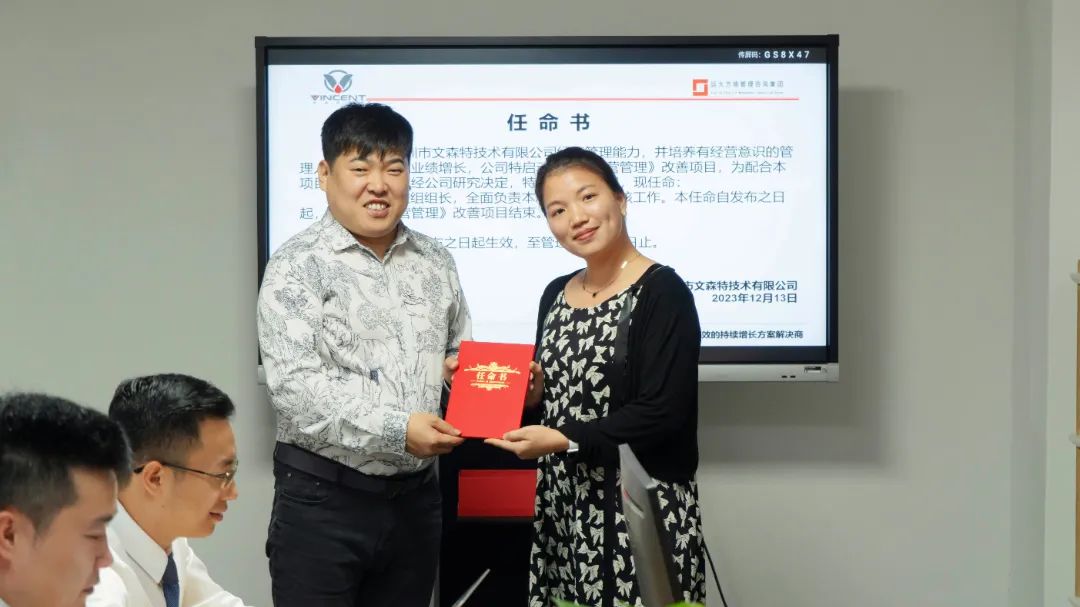 會(huì)上,吳總為項(xiàng)目老師頒發(fā)授權(quán)書,授予項(xiàng)目老師項(xiàng)目管理權(quán)利,同時(shí)為公司項(xiàng)目團(tuán)隊(duì)成員頒發(fā)任命書,明確職責(zé),強(qiáng)化責(zé)任,確保項(xiàng)目的有效落地。