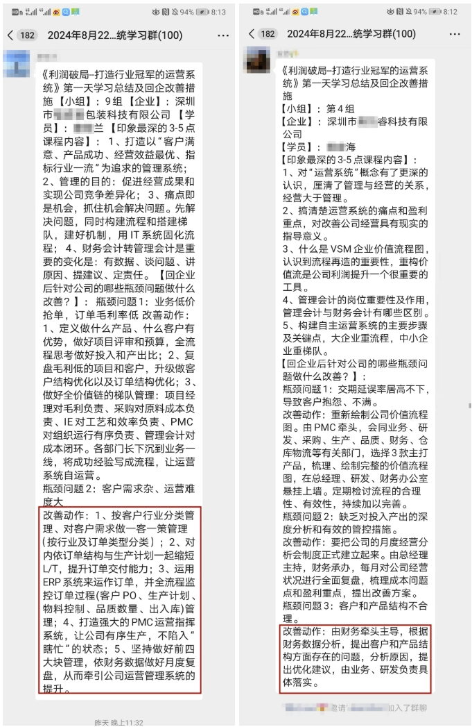 參加此次課程的學(xué)員近百人,來自不同行業(yè)不同企業(yè)的企業(yè)家、高管,更有部分企業(yè)組團前來學(xué)習(xí),全員提升思維,助力企業(yè)增長。白天的高能課程讓企業(yè)受益匪淺,結(jié)束一天的課程之后,企業(yè)老板都自發(fā)的帶著自己的團隊留下來進行深度復(fù)盤,盤點企業(yè)的關(guān)鍵節(jié)點和可優(yōu)化空間,真正做到學(xué)以致用,落地見效。