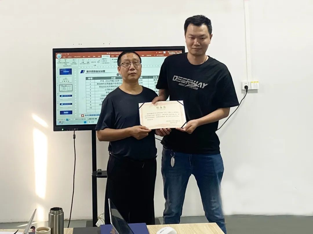 會(huì)上,舒總為項(xiàng)目老師和項(xiàng)目關(guān)鍵成員進(jìn)行授權(quán)和任命。