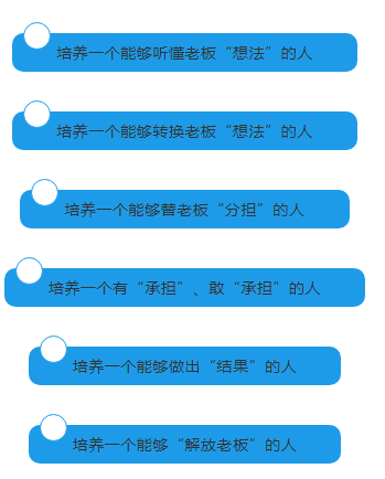 讓老板走出去,花更多的時(shí)間去研究市場(chǎng)、研究產(chǎn)品方向。讓操盤手具有自主經(jīng)營(yíng)意識(shí)思維的人,不管老板在與不在公司,都能讓企業(yè)正常運(yùn)營(yíng),推動(dòng)處理跨部門的事情;為將來(lái)企業(yè)做大做好準(zhǔn)備;使公司戰(zhàn)略可真正的落地執(zhí)行。通過(guò)訓(xùn)練,提升操盤手解決問(wèn)題的能力、系統(tǒng)思維能力與實(shí)戰(zhàn)運(yùn)營(yíng)能力。