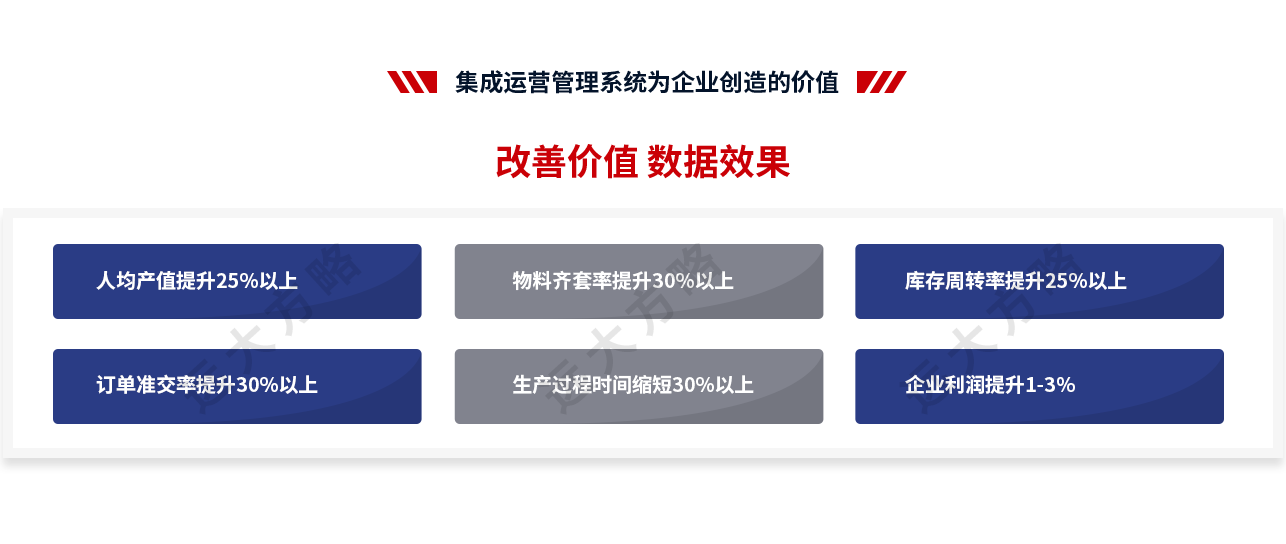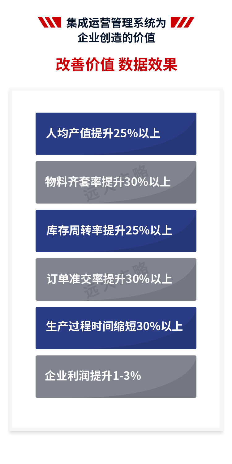 3、數(shù)據(jù)增長(zhǎng):交付周期縮短45.1%;人均產(chǎn)值提升37% ;訂單準(zhǔn)交率提升43%;庫(kù)存周轉(zhuǎn)提升至45%;構(gòu)建了經(jīng)營(yíng)管理中心,實(shí)現(xiàn)經(jīng)營(yíng)重點(diǎn)組織管控,構(gòu)建了企業(yè)的數(shù)據(jù)體系和信息流,數(shù)據(jù)驅(qū)動(dòng)效率提升。