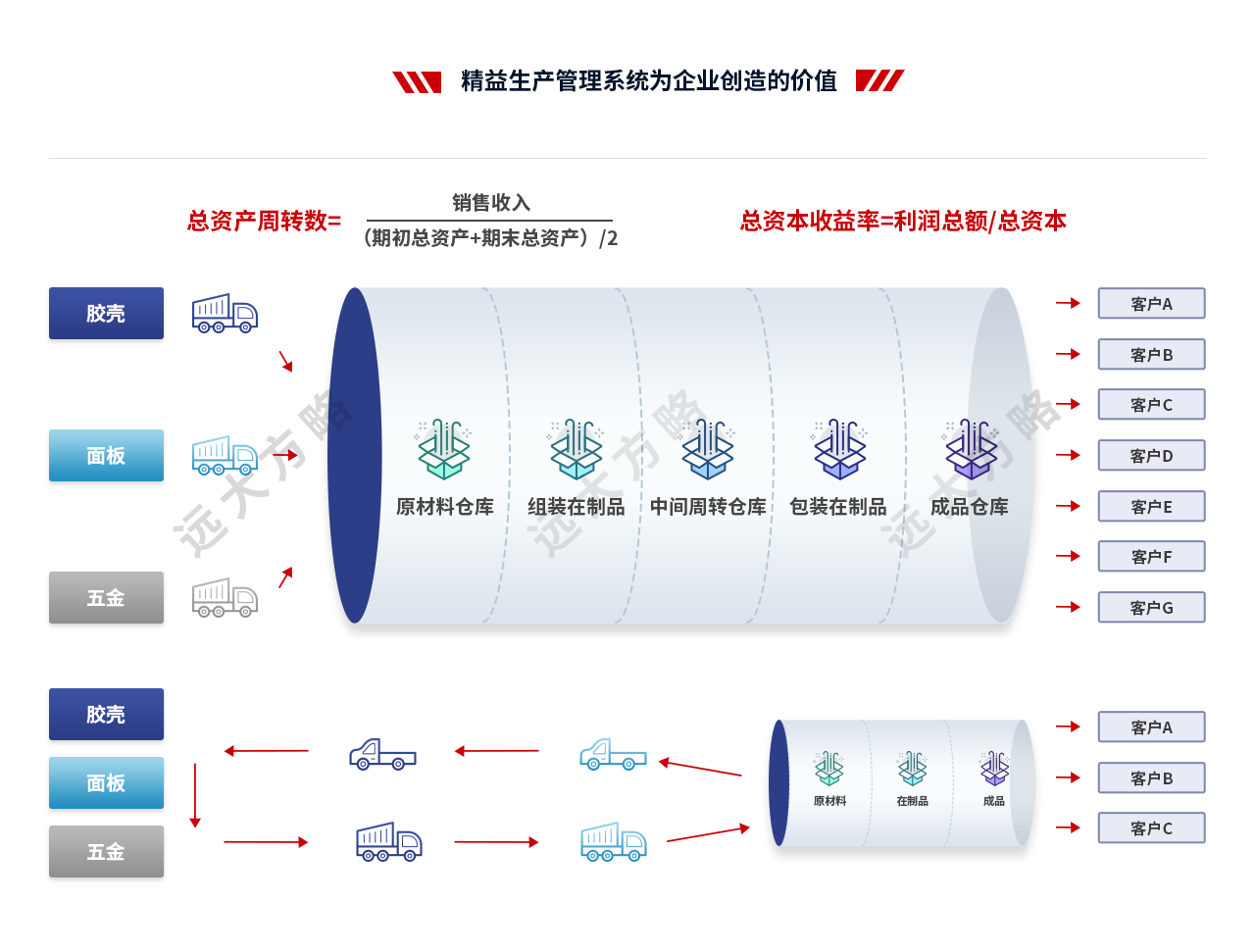 3、數(shù)據(jù)增長:精益整體成熟度提升33%、訂單準交率提升77%、生產(chǎn)周期整體縮短29%、庫存容積率提升50%;導入了供應鏈管理與精益生產(chǎn)模式,在領導理念、教育和培訓、客戶與流程導向、均衡化和設備管理、目視化管理、職責、品質(zhì)內(nèi)建、問題解決、授權員工、持續(xù)改善系統(tǒng)等10個方面有突出提升;在流動裝配、加工單元、6s與目視化、內(nèi)部物流、標準作業(yè)、精益意識等6個方面變化顯著。
